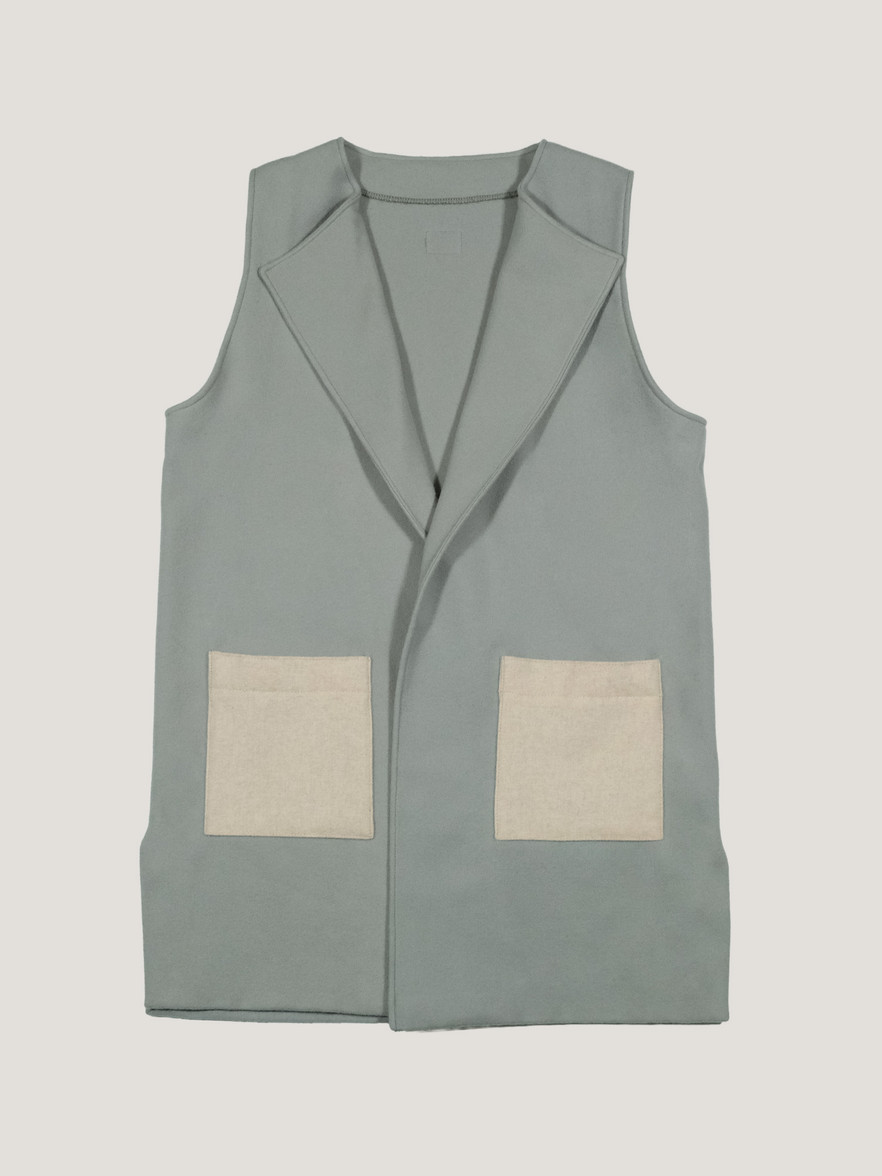Gilet lungo per adulto con tasche quadrate a contrasto